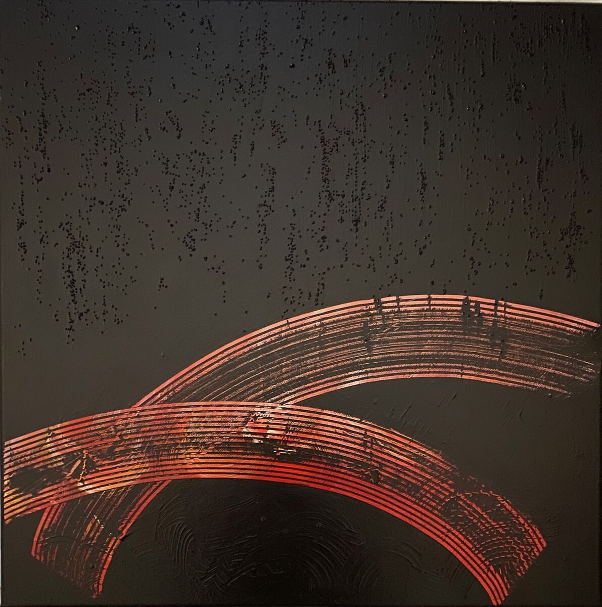 Acrylic paint applied with glass beads for texture, 50x50 cm