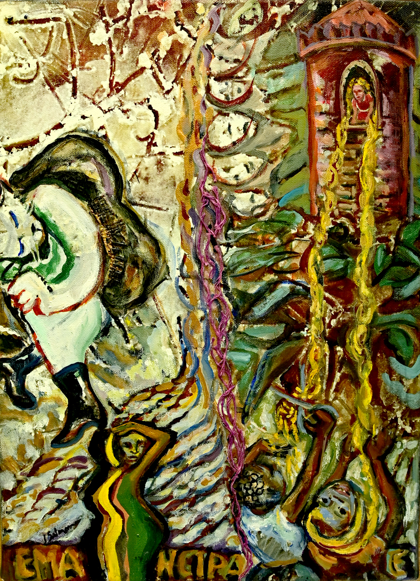 Acrylic and collage on canvas, 40.6x30.5 cm