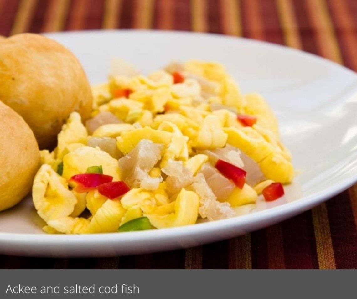 3.     Ackee und Saltfish mit Johnny Cakes, Callaloo und Brotfrucht