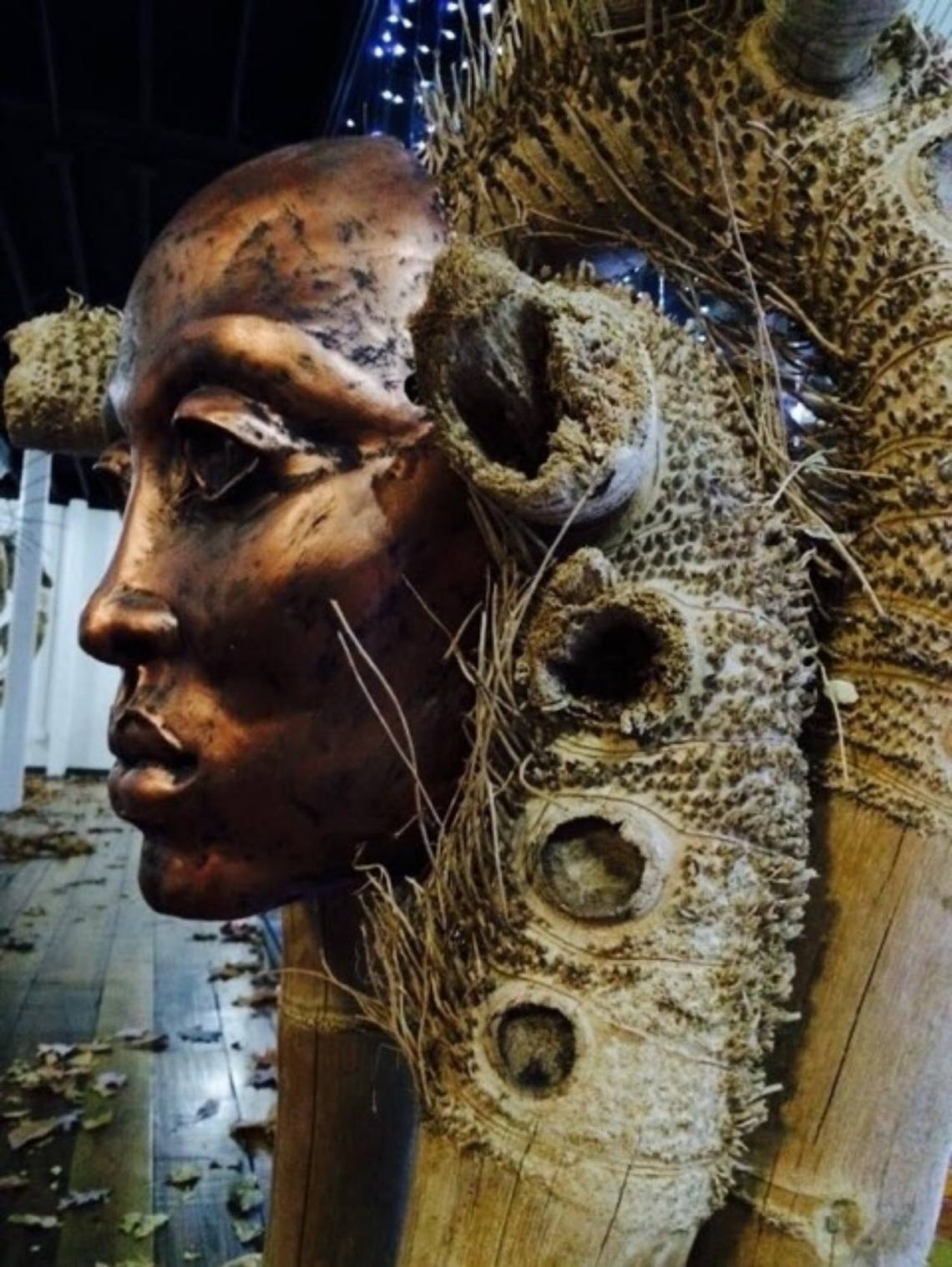In Nakazzis Kunst manifestiert sich eine revolutionäre Ästhetik, die sich in gleicher Weise philosophisch, politisch und erotisch niedersetzt. Ihre Maskengestaltungen laden zur Berührung ein und gewinnen ihre Energie aus tiefer Spiritualität. Sie beschwören die Gegenwart der Vorfahren und verbinden Mystik und Materie. Nakazzis Landschaften sind geprägt von sogenannten Shape-Shifters, von Menschen, die beliebig ihre Erscheinungsform verändern können. Deren Dreadlock-Frisuren wandelten sich in Wurzeln, die sich gen Himmel und in Richtung Erdmitte strecken. Bäume, die fest verankert im Wasser scheinen, verweisen auf den grenzenlosen Übergang zwischen dem Fantastischen und dem alltäglichen Leben.