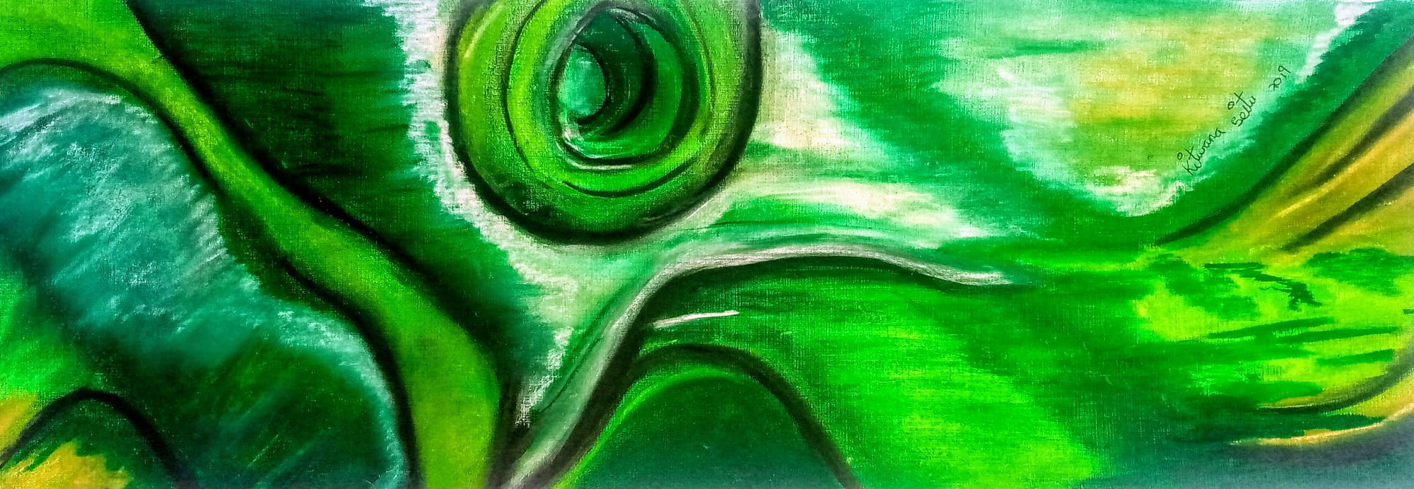 Dry pastels on watercolour paper, 62x21cm