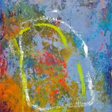 oil mix media on wooden panel, 35.5x35.5x4 cm