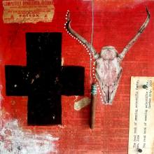 Oil and mixed media on wooden panel, 25.4x20.3 cm, framed in black shadow box 2.54 cm deep
