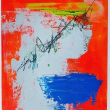 Oil and mixed media on Arches paper, 25.4x35.5 cm, framed with white matte and white frame, 43.8x55.9 cm