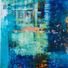 Oil and mixed media on Arches paper, 25.4x17.8 cm, framed with green/blue matte and black frame, 35.5x43.2 cm