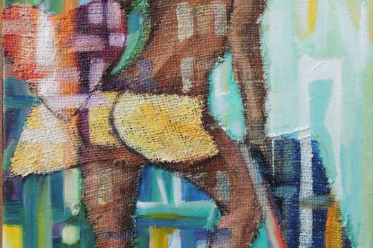 Oil on canvas with burlap - collage