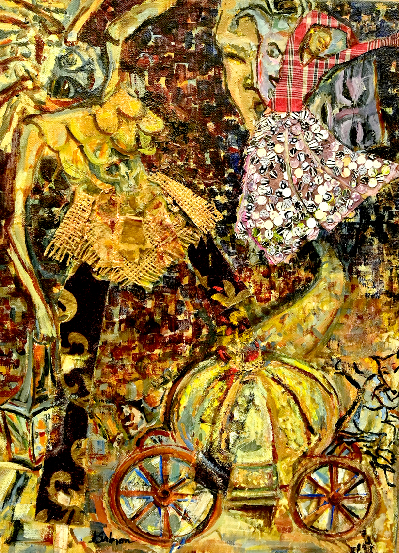 Acrylic paint with collage on canvas, 51x40 cm