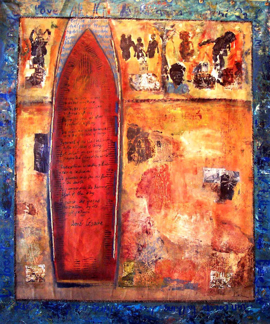 acrylic on canvas with collage stitches, 147x137 cm
