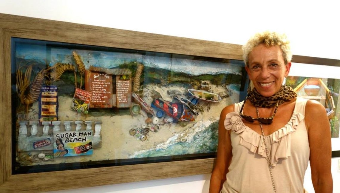Installations inspired by Jamaican text & texture. Incorporates graffiti and street-type signage with re-cycled disposable materials & paint - mostly based on Jamaican urban, beach or country life themes