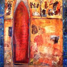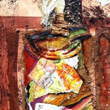 Acrylic paint with collage on canvas, 152x137 cm