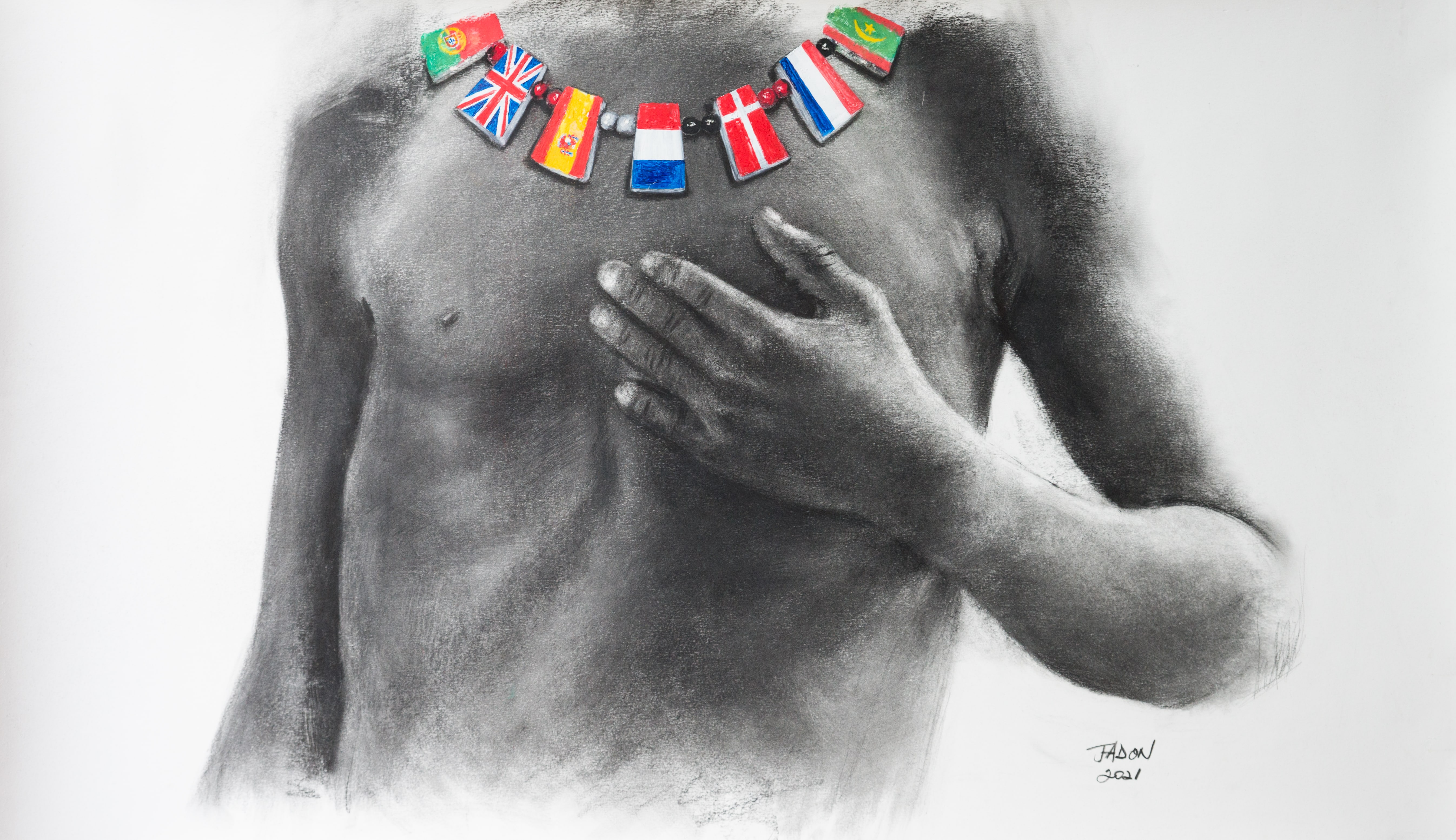 Charcoal and soft pastels on paper, 71x53 cm