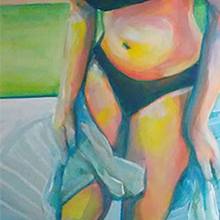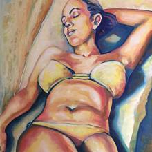 Acrylic on canvas, 45x60 cm. A feeling of completeness. That knowing smile, that life is good.