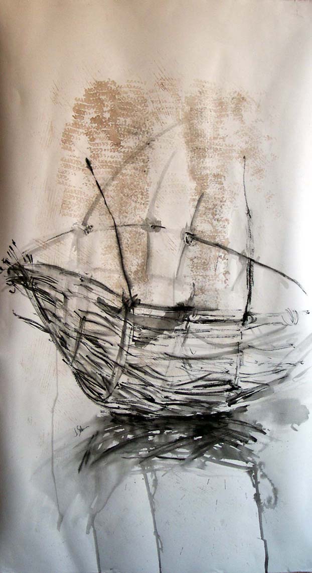 sumi and walnut inks on paper, 101.6x71.12 cm