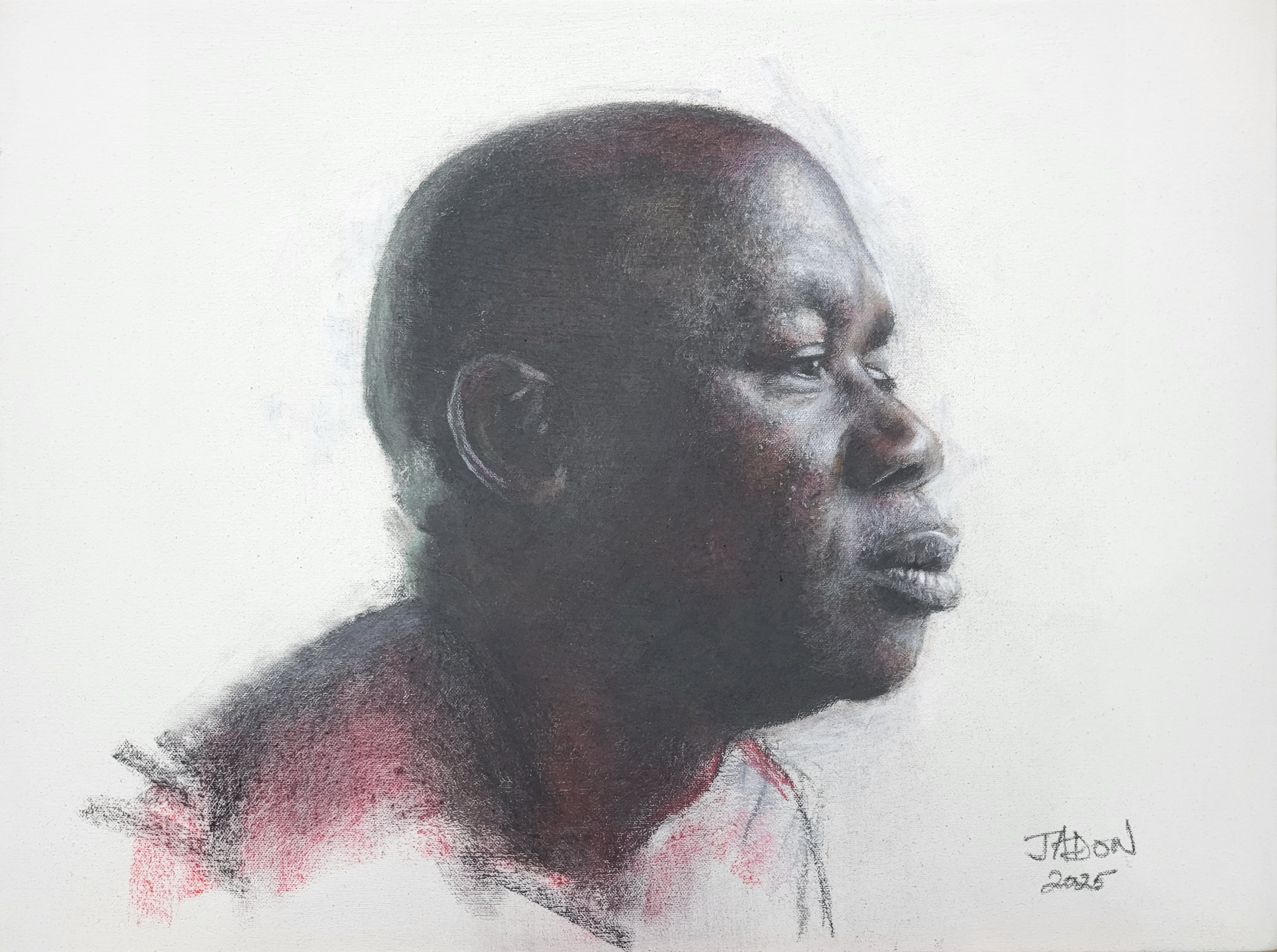 Charcoal and soft pastels on canvas, 61x45 cm
