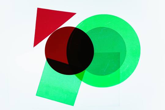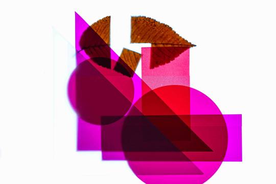 Abstract photography on fine art Hahnemühle paper, 40x40 cm. Photo-gels cut in multiples shapes and arranged in a montage then photographed.