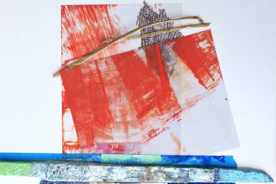acrylic on transparent film, resin, wood and sea fan on canvas, 30x41 cm