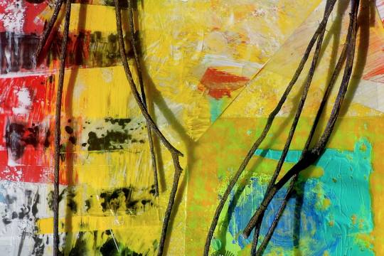 Acrylic on transparent film, resin, roots from the tree Great Banyan on canvas 61x91 cm