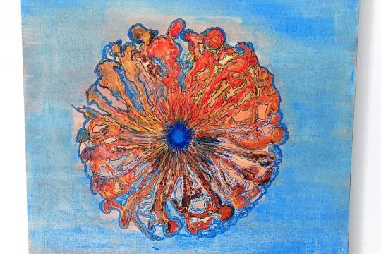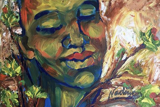 Acrylic on canvas, 45x60 cm. A feeling of completeness. That knowing smile, that life is good.