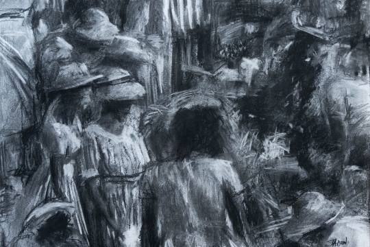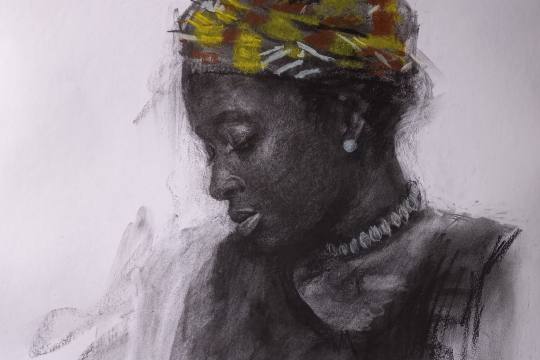 Charcoal and soft pastel on water colour paper, 53x76 cm