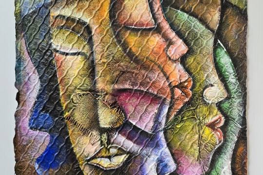 acrylic paint on embossed paper, 35.5x48 cm