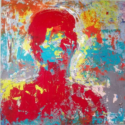 oil mix media on wooden panel, 35.5x35.5x4 cm