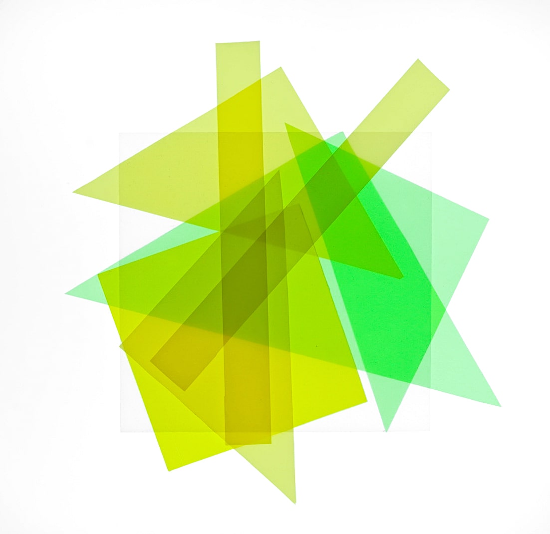 Abstract photography on fine art Hahnemühle paper, 40x40 cm. Photo-gels cut in multiples shapes and arranged in a montage then photographed.