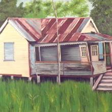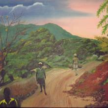 Oil on canvas, 56x42 cm, rural Jamaican scene