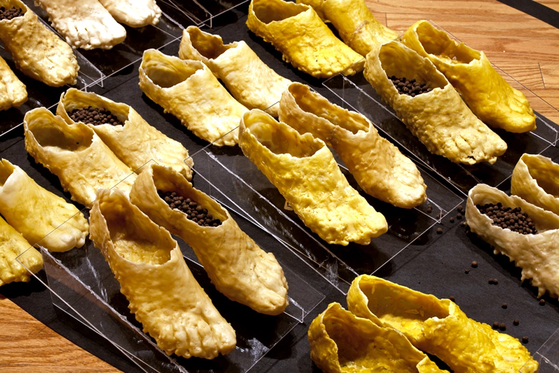 cast wax objects, with plexi glass, seeds, tape, variable sizes