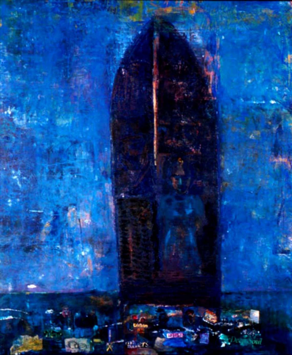 Acrylic paint with collage on canvas, 152x137 cm